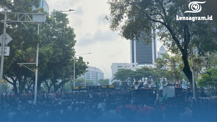 Jakarta (Lensagram) — Suasana di Jakarta Pusat hari ini tampak lebih padat dari biasanya. Ribuan personel kepolisian diterjunkan untuk mengamankan tiga titik aksi unjuk rasa yang berlangsung sejak pagi. Sejumlah kelompok massa dikabarkan turun ke jalan untuk menyampaikan aspirasi terkait berbagai isu sosial dan kebijakan pemerintah.